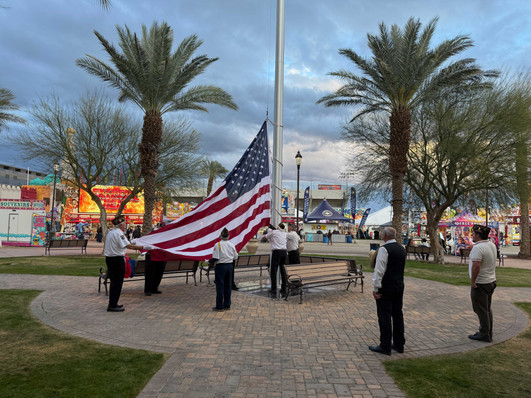 La ceremonia de retirada de la bandera en honor a la nación se llevó a cabo el 16 de febrero en la asta ubicada en el Patio del Taj Mahal, dentro de los terrenos de la Feria del Dátil. El evento contó con la presencia del Supervisor del Cuarto Distrito, Manuel Pérez, quien destacó la importancia de honrar los símbolos patrios y la participación de la comunidad.